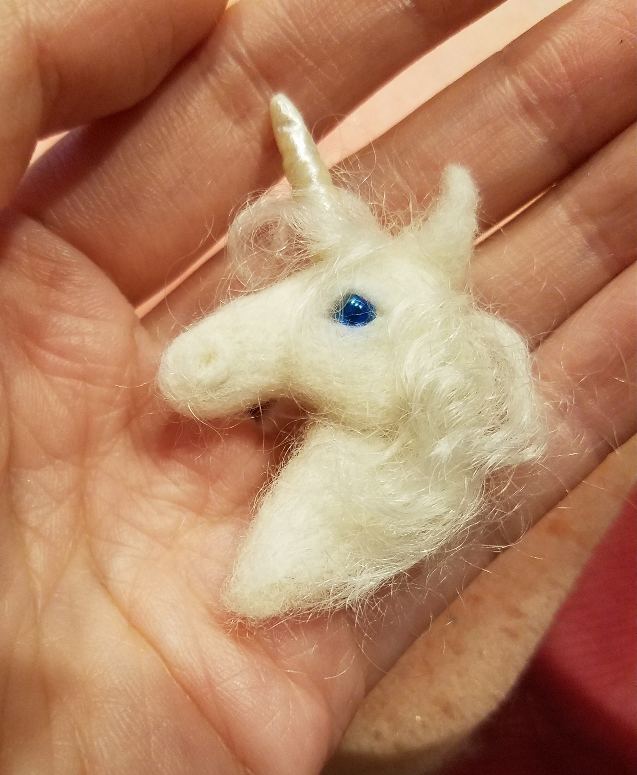もう数年前のヨコハマハンドメイドマルシェの時用にブローチを作りたくて、十八番の羊毛ユニコーンの小さなレリーフを作っていました。
